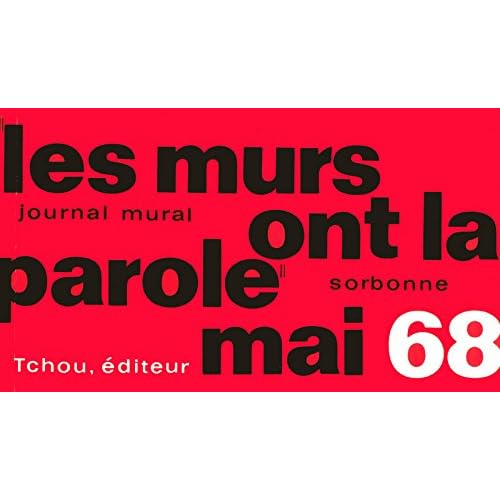 Les graffitis de Mai 68 : l'imagination et la liberté de la parole au pouvoir !"Cette fois c'était aussi au temps des cerises. La commune de Paris allait être centenaire. On lavait toujours les façades. Les murs disponibles portaient le blanc des uniformités sans âge ; seule ou presque, la Sorbonne restait noire. La rue, la rue alors ne voulait dire qu'embouteillages. "Défense d'Afficher " n'était pas encore un poème mais une loi d'un autre siècle. L'un des premiers, qui dynamita la bombe de peinture, a pulvérisé en rouge "Interdit d'interdire" : c'était attaquer la forteresse au badigeon et, en coloriant le mur, vouloir faire tomber les murs." Dans ce recueil, Julien Besançon redonne la parole à ce qu'il appelle un "monument éphémère d'un printemps". Dans une France que certains pensaient assoupie, les événements de Mai 68 ont surpris par les profondes remises en cause qu'ils ont révélées. A l'aube du 40e anniversaire de ce mouvement étudiant et social qui résonne encore dans tous les esprits, ces graffitis aujord'hui en grande partie effacés, offrent un témoignage unique de l'imagination et de la liberté de ton de ses protagonistes. Broché=184 pages. Editeur =Tchou (11 octobre 2007). Collection =Les murs ont la parole. Langue =Français. ISBN-10=2710707519. ISBN-13=978-2710707516. Dimensions du produit=10,7 x 1,9 x 18,3 cm. Moyenne des commentaires client =5.0 étoiles sur 5 1 commentaire client. Classement des meilleures ventes d'AmazonPolitiqueGéopolitiqueGéographie et urbanisme=24.079 en Livres (Voir les 100 premiers en Livres) .zg_hrsr { margin: 0; padding: 0; list-style-type: none; } .zg_hrsr_item { margin: 0 0 0 10px; } .zg_hrsr_rank { display: inline-block; width: 80px; text-align: right; } n°93 dans Livres > Sciences humaines > n°99 dans Livres > Actu, Politique et Société > Documents d'actualité > Grands conflits et géopolitique > n°171 dans Livres > Sciences humaines >.Je retrouve grâce à vous mes souvenirs de jeunesse, j'étais étudiante à l'époque!J'ai participé à de nombreuses réunions à la fac de médecine... je viens de reprendre une bouffée de jeunesse! Merci..